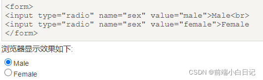 <input type="radio"> 标签定义了表单单选框选项