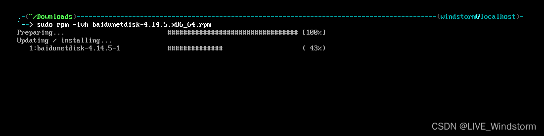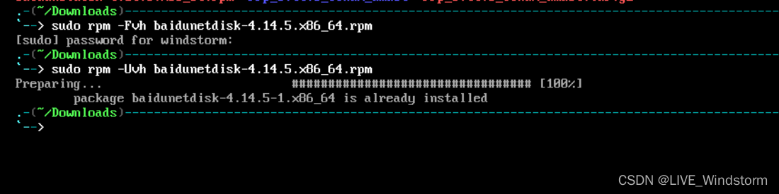 命令:sudo rpm -Uvh baidunetdisk-4.14.5.x86_64.rpm