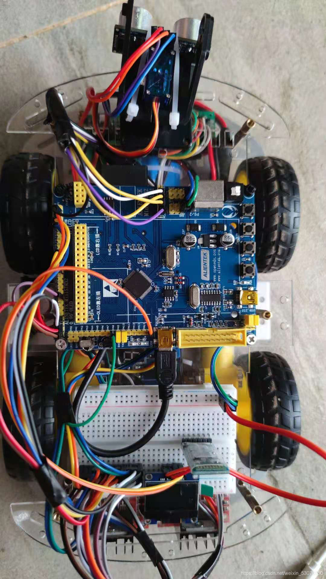 使用LD3320模块,实现用户说一句话,比如说一句"小车左转",小车就会进行左转,到后面会加SD卡模块,实现语音交互等功能.LD3320是非特定人(不用针对指定人)语音识别芯片,即语音声控芯片。最多可以识别50条预先内置的指令。工作模式:LD3320(LDV7)语音模块可以工作在以下三种模式:普通模式:直接说话,模块直接识别;按键模式:按键触发开始ASR进程;口令模式:需要一级唤醒词(口令);推荐使用口令模式,这样避免嘈杂环境下误动作。小车与STMF103接线图:...
