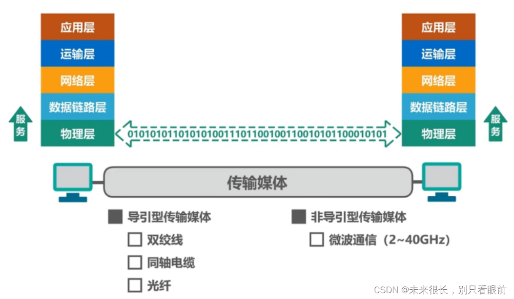 ①严格来说,传输媒体并不属于物理层,它并不包含在体系结构中。