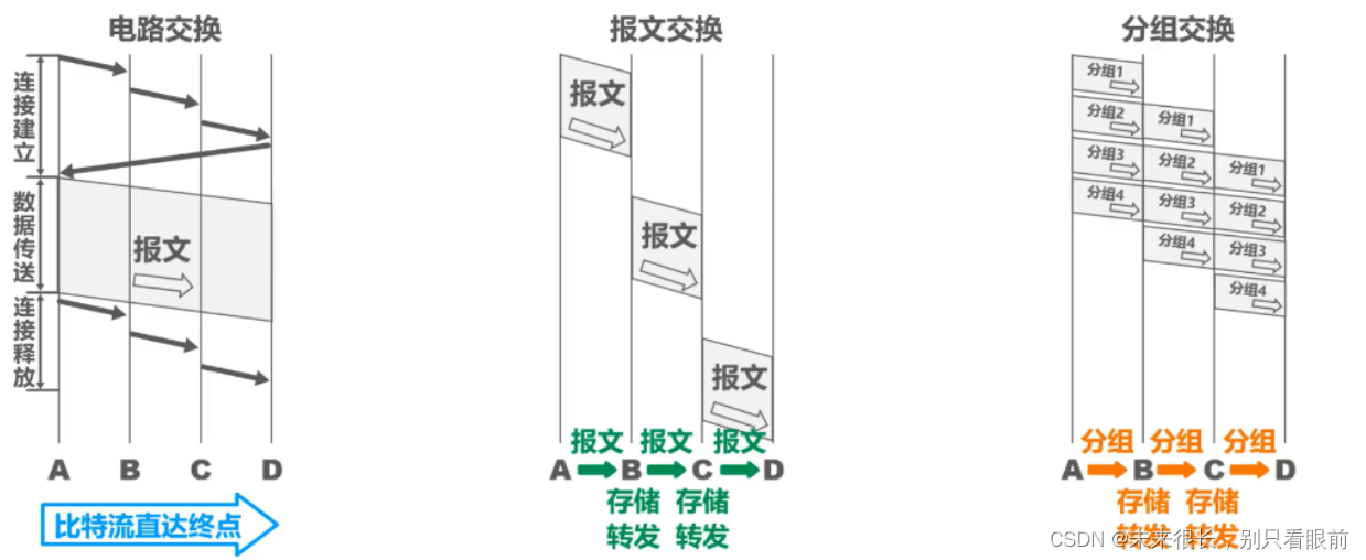报文交换与分组交换类似,不过对报文没有限制大小,现如今多使用分组交换。所以就不对其进行展开介绍了;