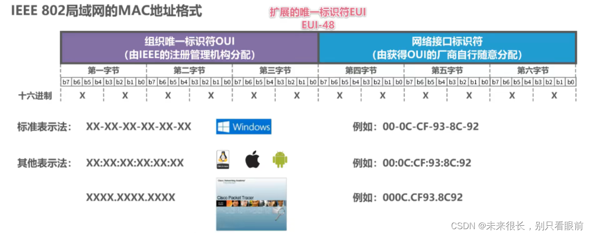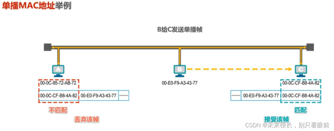 如图所示:主机A要给主机C发送数据,但是表示数据的信号会通过总线传播到总线上的每一主机,那么问题来了,主机C如何知道该数据是发送给自己的,自己要不要接受?而主机B,D,E又如何知道该数据并不是发送给自己的,自己应该拒绝? 这就很自然的引出来如何标识网络中的各主机问题!