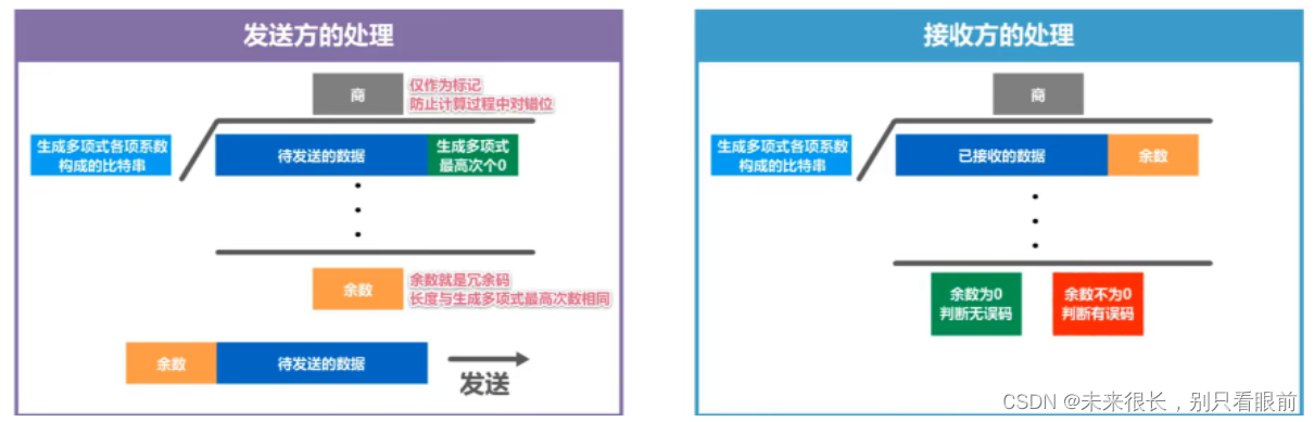 接收方:①接收分组 ②还原报文