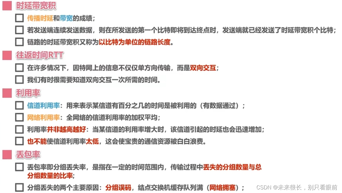 在许多情况下,因特网上的信息不仅仅单方向传输,而是双向交互,我们有时很需要知道双向交互一次所需要的时间,因此,往返时间RTT(Round-Trip Time)也是一个重要的性能指标;