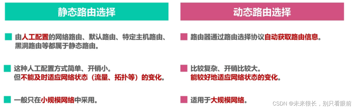 这种人工配置方式简单、开销小。但不能及时适应网络状态的变化。一般只在小规模网络中采用。
