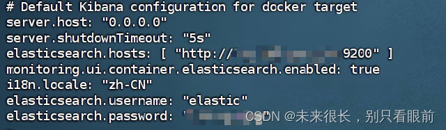 3、在配置文件中最近下面的配置:密码不要拼写错误了,拼写错误会导致连接不上es的,从而导致kibana启动失败。