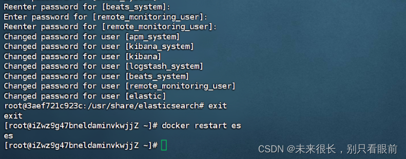 然后再重新查看一下日志 docker logs es ,看看有没有问题就行。