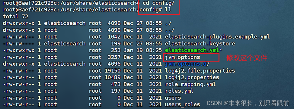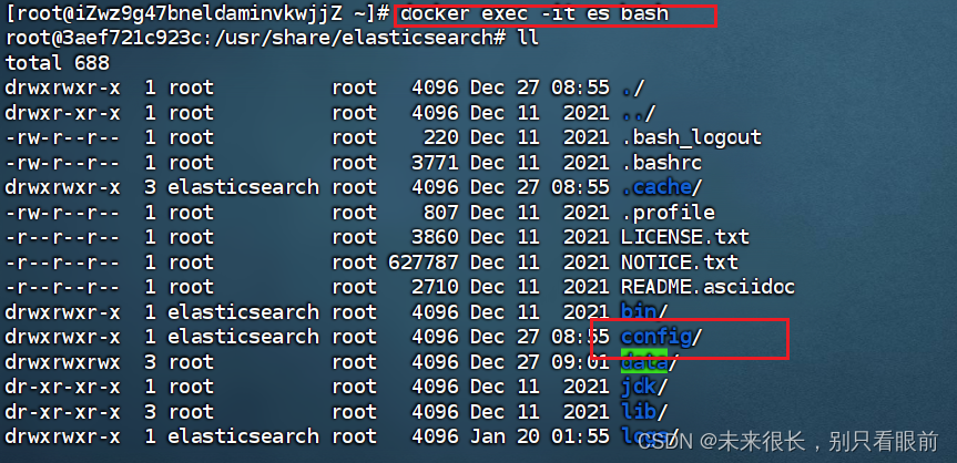 方法2:先不要停止运行的es,然后进入es容器内部: docker exec -it es bash
