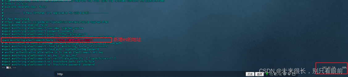 注意,如果这里为es设置了密码,那么记得在logstash里面也要添加es的账号和密码!!!否则,logstash就连接不上es了!!!