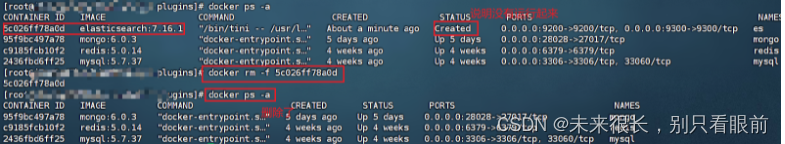 如果执行错误了,想要重新执行,那么可以先把刚刚创建的镜像给删除:docker rm -f 容器镜像id