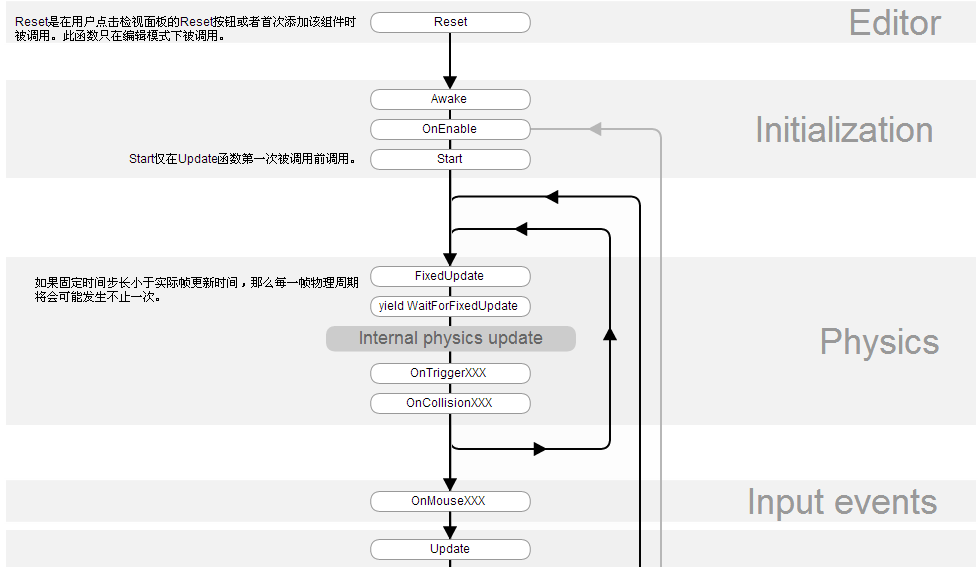 每帧根据帧率高低可能多次调用也可能不调用,执行后立即开始物理计算和更新,做移动计算时无需使用Time.deltaTime