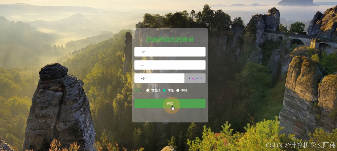 学生通过后台登录窗口进行输入自己的账号、密码等信息,进行登录,如图5-10所示。