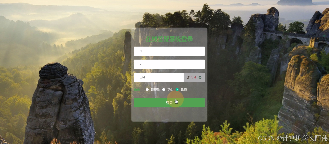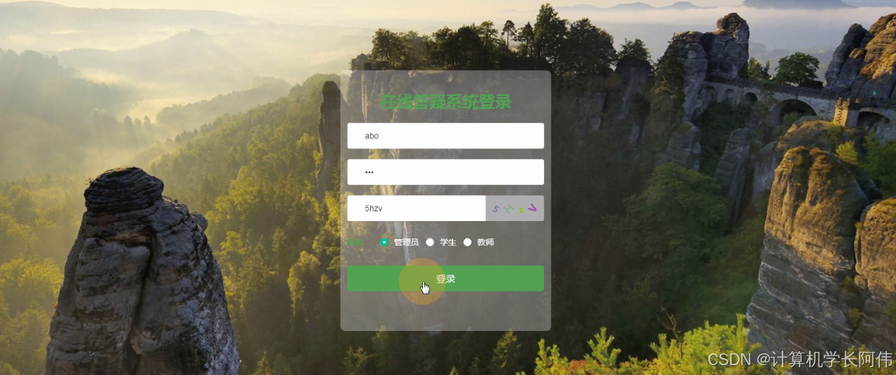 教师通过后台登录窗口进行输入自己的账号、密码、验证码等信息,进行登录,如图5-5所示。