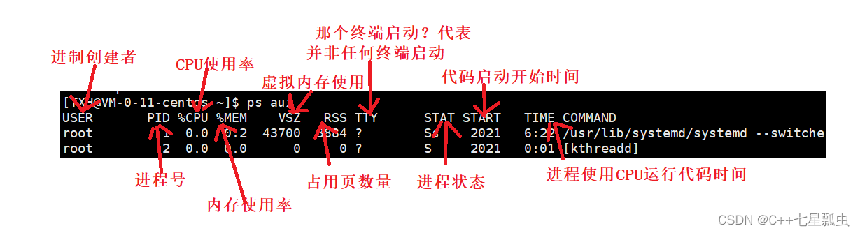 使用 ps aux 命令可以查看进程,如下: