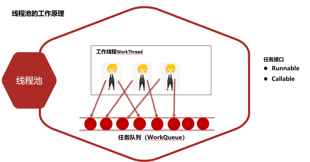 线程池的创建及处理Runnable任务 1、为什么要用线程池?每当用户发起一个请求,后台就会创建一个新线程来处理,而创建新线程的开销很大,当用户请求很多时,会严重影响系统的性能,或者系统直接崩掉。这种方式就很nice那么如何得到线程池对象?JDK 5.0起提供了代表线程池的接口ExecutorService方式一:使用ExecutorService的实现类ThreadpoolExecutor自创建一个线程池对象方式二:使用Executor(线程池的工具类)调用方法返回不同特点的线程池对象(一般会使用方式一)2、