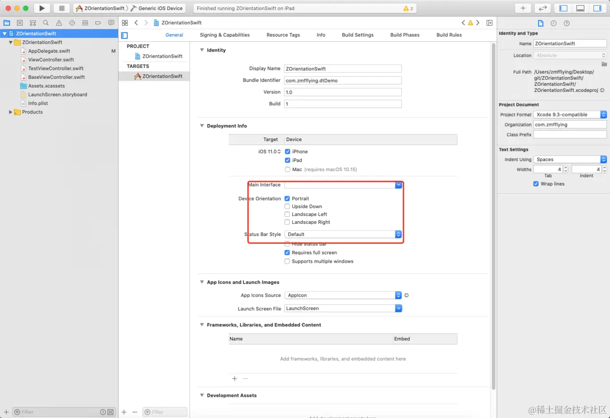 OC版点这里第一步:设置项目属性为只允许竖屏