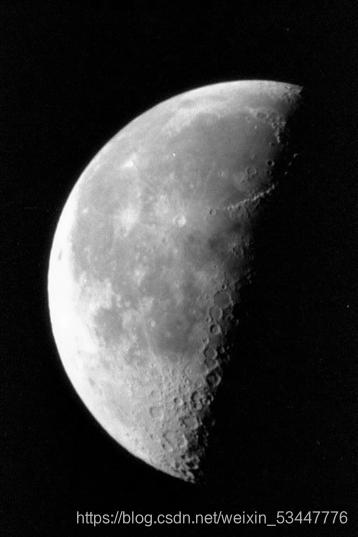 图像的灰度直方图 1.灰度直方图的定义1.1定义灰度直方图是关于灰度级分布的函数,是对图像中灰度级分布的统计。灰度直方图是将数字图像中的所有像素,按照灰度值的大小,统计其出现的频率可表示为 , k=0,1,···,L-1且式中,k为图像f(m,n)的第k级灰度值,则为f(m,n)中灰度值为k的像素个数,n为图像的总像素个数,L为灰度级数。不同的灰度分布对应着不同的图像质量。灰度直方图能反映图像的概貌和质量,也是图像增强处理的重要依据1.2灰度图像展示上图为月亮原图,下图为对应的灰度
