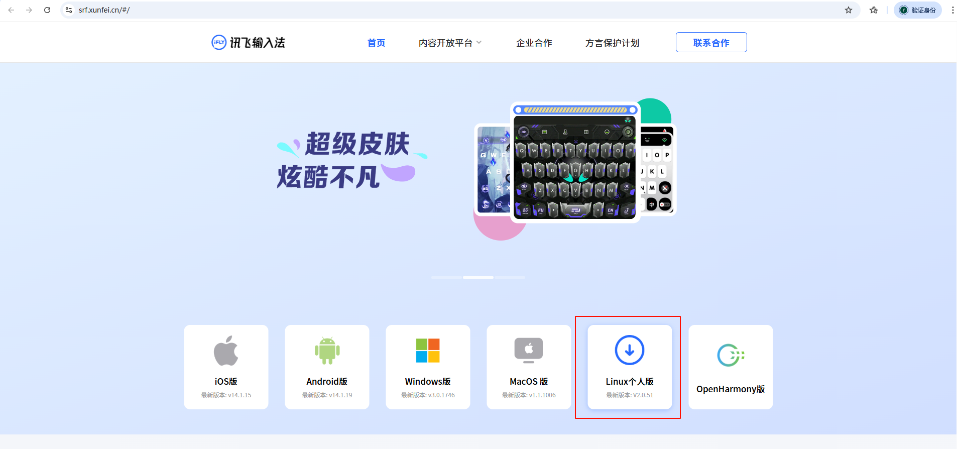 找到一台可以连接公网的主机,访问讯飞输入法官网(https://srf.xunfei.cn/),找到Linux版本下载。选择与你的系统架构匹配的deb包(例如,x86_64或ARM),下载完成之后将deb包上传到离线的主机上安装。