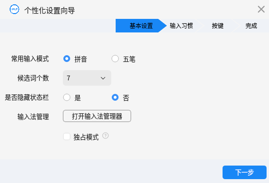 安装完成后,重启系统或重新登录。进入“系统设置”->“区域和语言”->“输入法”,添加讯飞输入法到FCITX框架中。通常,点击“+”号,在列表中找到“讯飞输入法”并添加。如果未显示,尝试在终端输入fcitx-configtool手动配置,也可以通过讯飞输入法的设置向导进行个性化配置。如下: