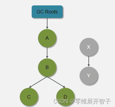 扫描堆中的对象,看是否能够沿着 GC Root 对象 为起点的引用链找到该对象,找不到,表示可以回收