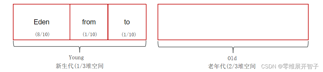 年轻代被划分为三部分,Eden区和两个大小严格相同的Survivor区,根据JVM的策略,在经过几次垃圾收集后,任然存活于Survivor的对象将被移动到老年代区间。