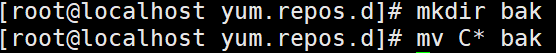 检查完成之后我们需要进入/etc/yum.repos.d/,然后创建一个新的目录,将原本目录下的文件移进去