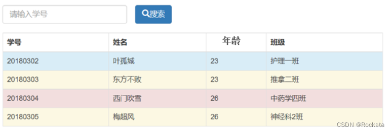 - 后台程序需要存储如上学生信息并展示,然后要提供按照学号搜索学生信息的功能。