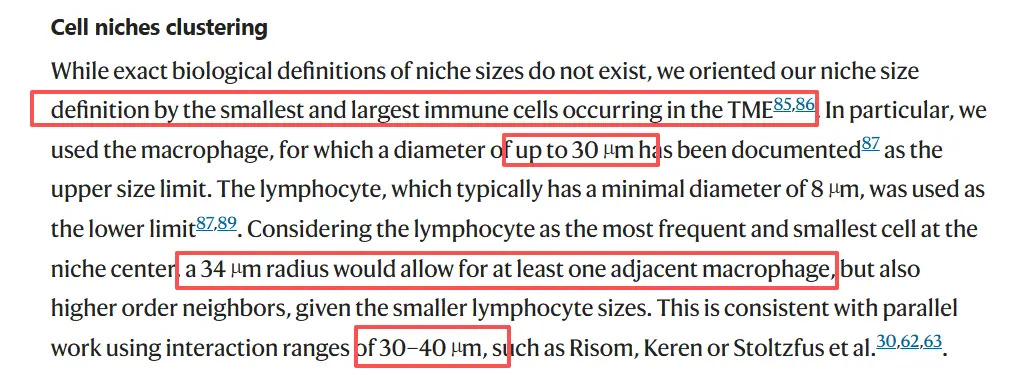 实现的方法,看来在细胞niche的分析上,不同细胞类型因为其细胞大小不同,niche的距离范围也会适当调整。