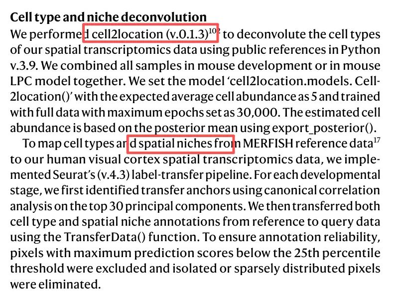 - 对人类发育中大脑V1区的分析揭示了转录组谱在 prenatal 和新生儿期对细胞类型的关键定义作用,其空间模式与MERFISH数据高度匹配。