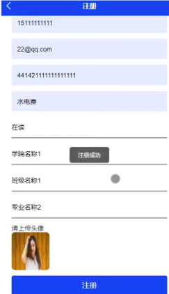 毕业生微信端功能的实现:注册界面,第一次使用本小程序的使用者,首先是要进行注册,点击“注册”。