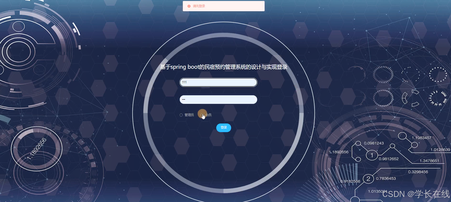 管理员的登陆界面包括管理员的账号、密码,其中就是已有的账号,还有需要注册的账号。只要管理员在账号上注册,注册信息就会被录入 MySQL数据库,有一个资料库,只要输入成功,就可以登陆,然后进入主页的管理。