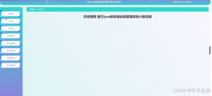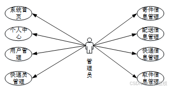 管理员登录到快递业务管理系统可以查看系统首页、个人中心、用户管理、快递员管理、寄件信息管理、配送信息管理、快递信息管理、取件信息管理等功能进行详细操作