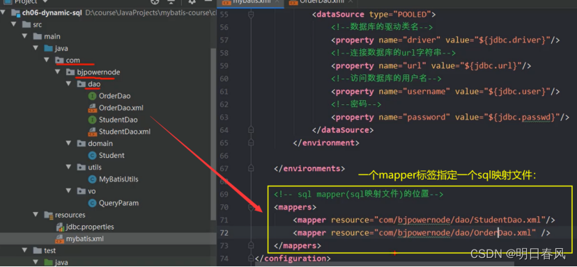 mybatis的主配置文件,使用<property>指定文件的位置,在需要使用值的地方:$ {key}