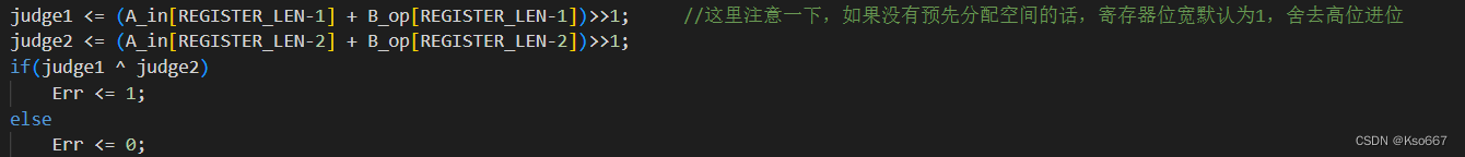上面语句的预期功能是判断补码运算的溢出问题,在实际运行中发现参与异或运算的两个数据移位后结果恒为0,其原因时Verilog默认中间变量位宽为1。当为中间变量提前指定位宽后运行正常: