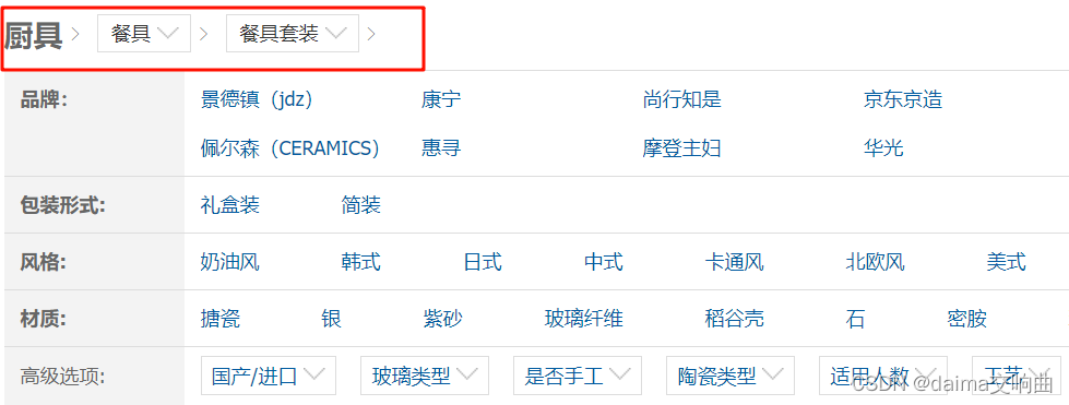 路径为:厨具→餐具→餐具套装