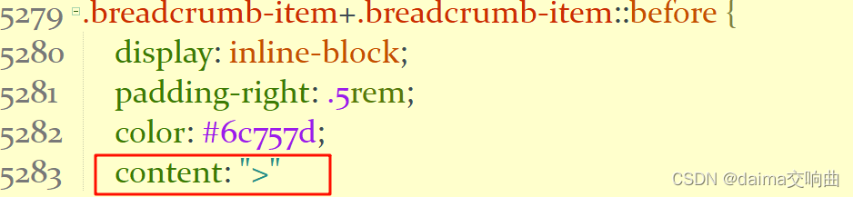 可在Bootstrap.min.css中双击ctrl查找breadcrumb-item将conten中的' / '更改为 ' > ',进行保存