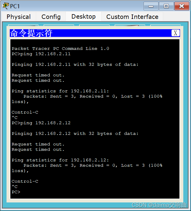 PC2---ping ----SA/SB 大部分请求超时 即不通