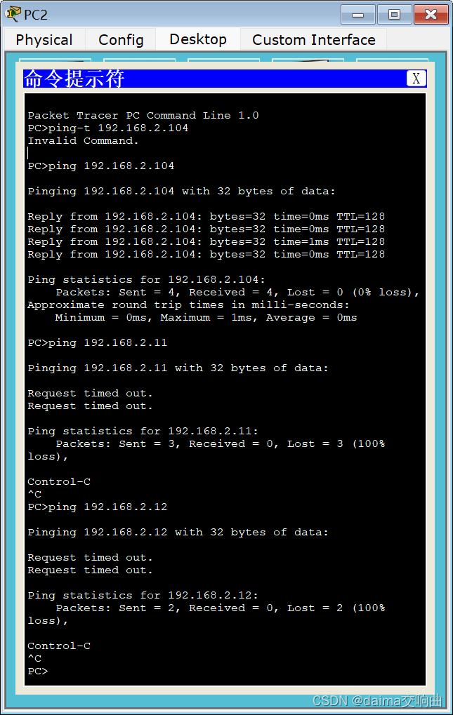 PC2---ping ---PC4 请求成功,通