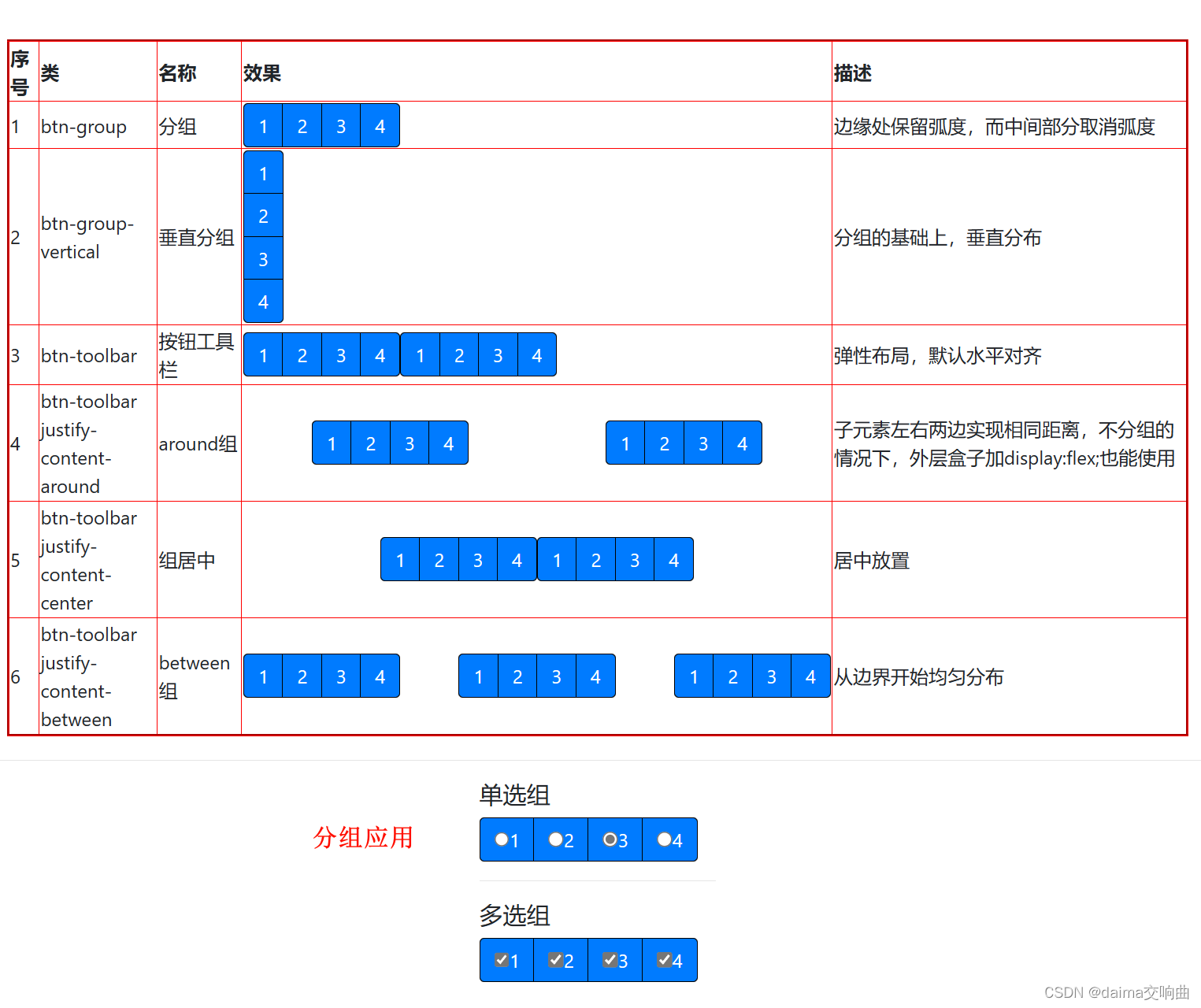 1. 按钮组表格