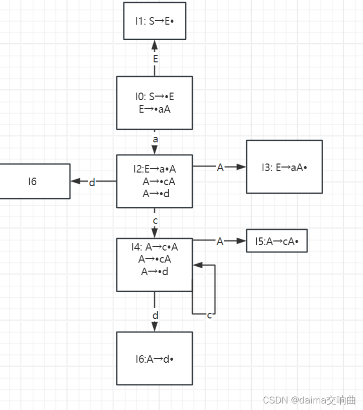 之后写出I4接受符号后产生的状态,直到出现规约项(即I5、I6)