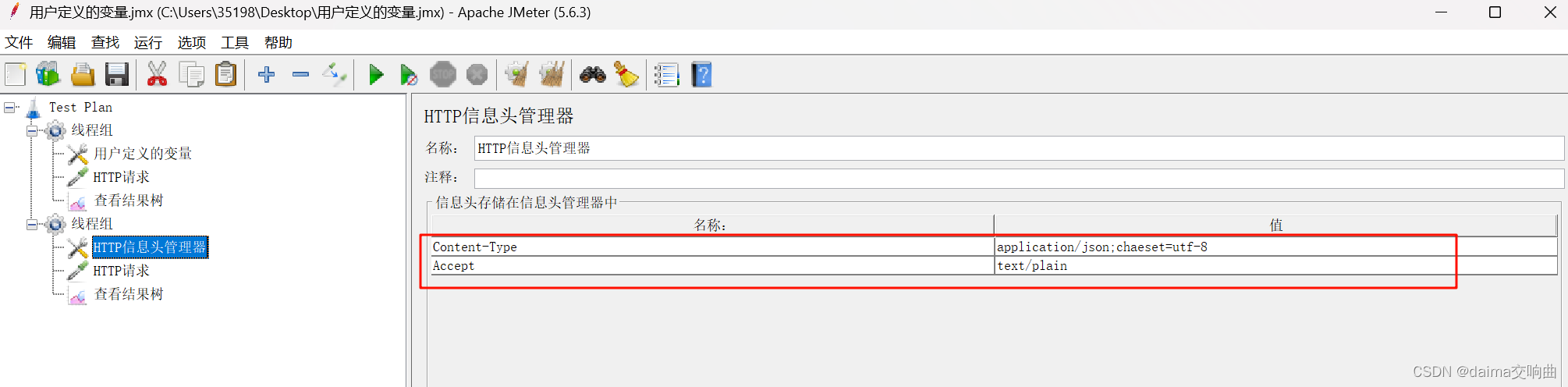②HTTP信息头管理器