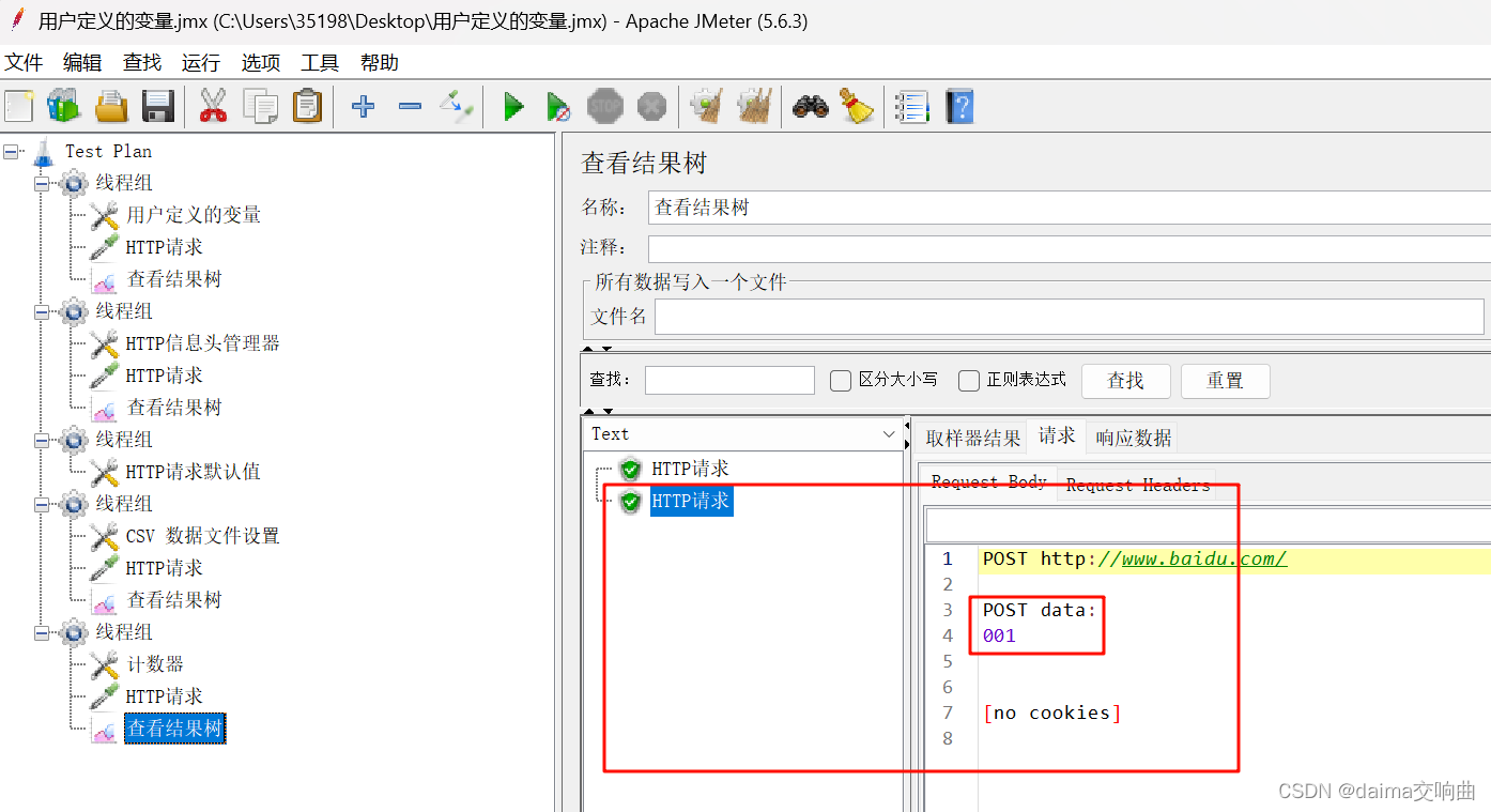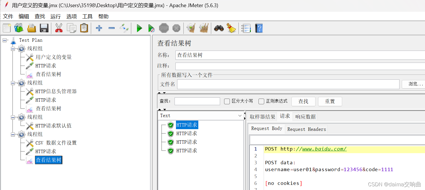 一、使用JMeter演示取样器、监听器、配置元件、断言的使用;