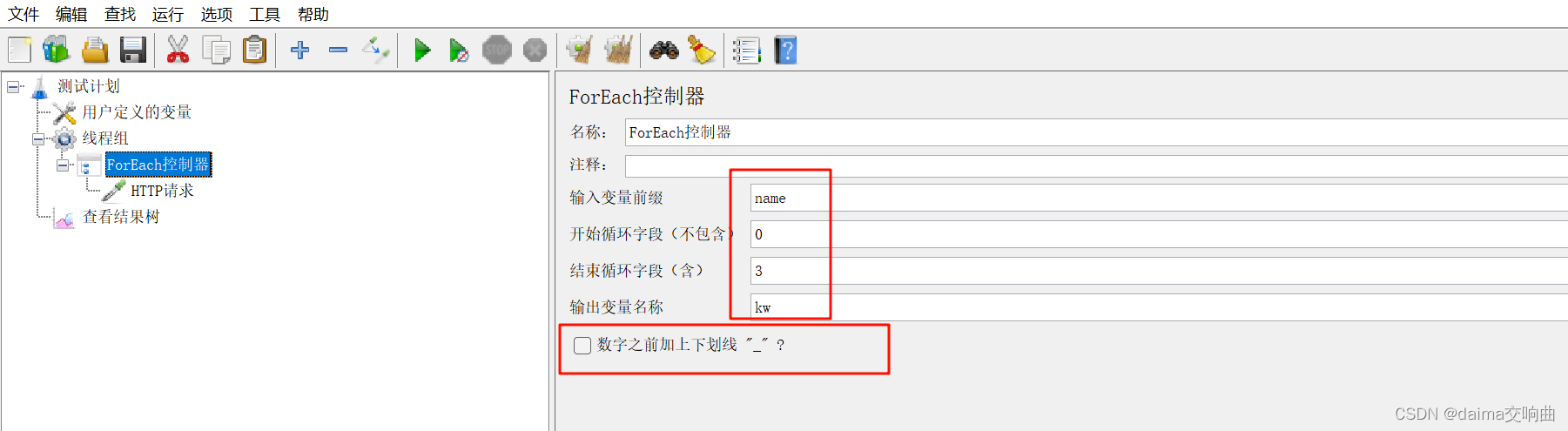 分析上述要求,要想逐个读取用户定义的变量并定义一组关键字作为请求参数,可以使用 ForEach 控制器。