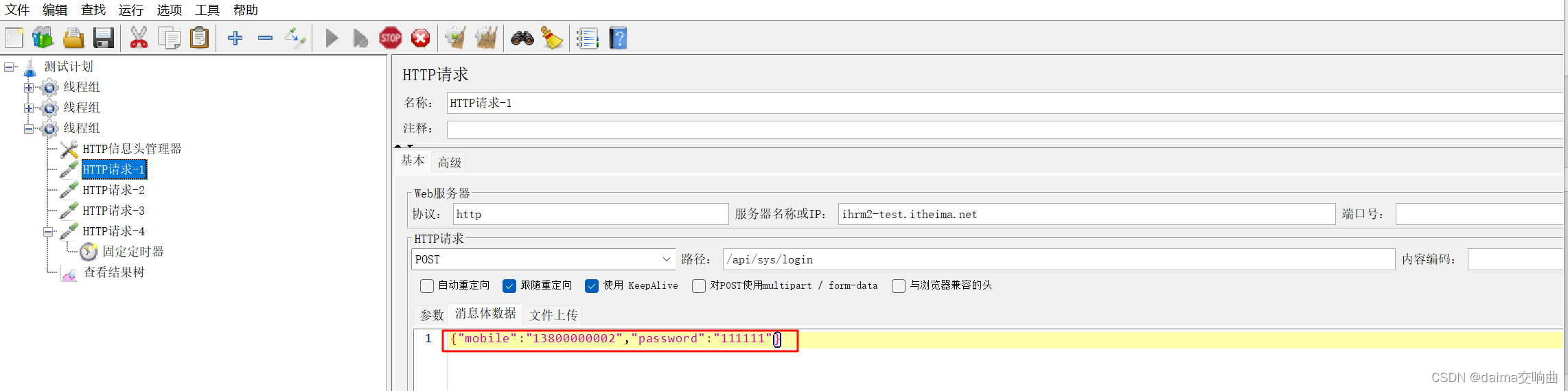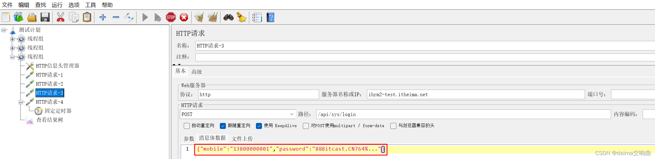 要求使用JMeter模拟登录iHRM人力资源管理系统