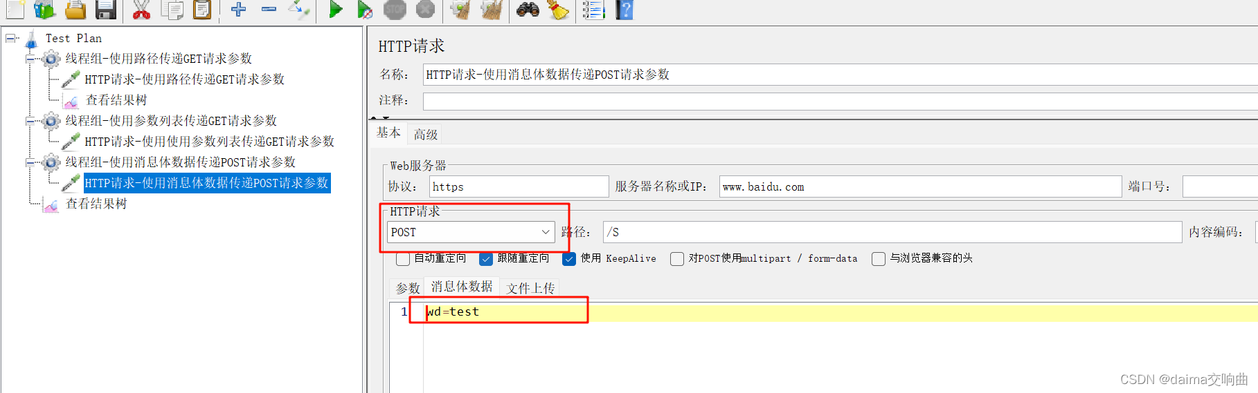 ③使用消息体数据传递POST请求参数