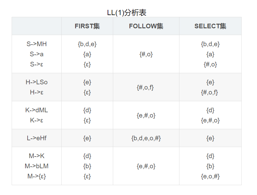 编绎原理 - LL(1)预测分析表与预测分析过程表