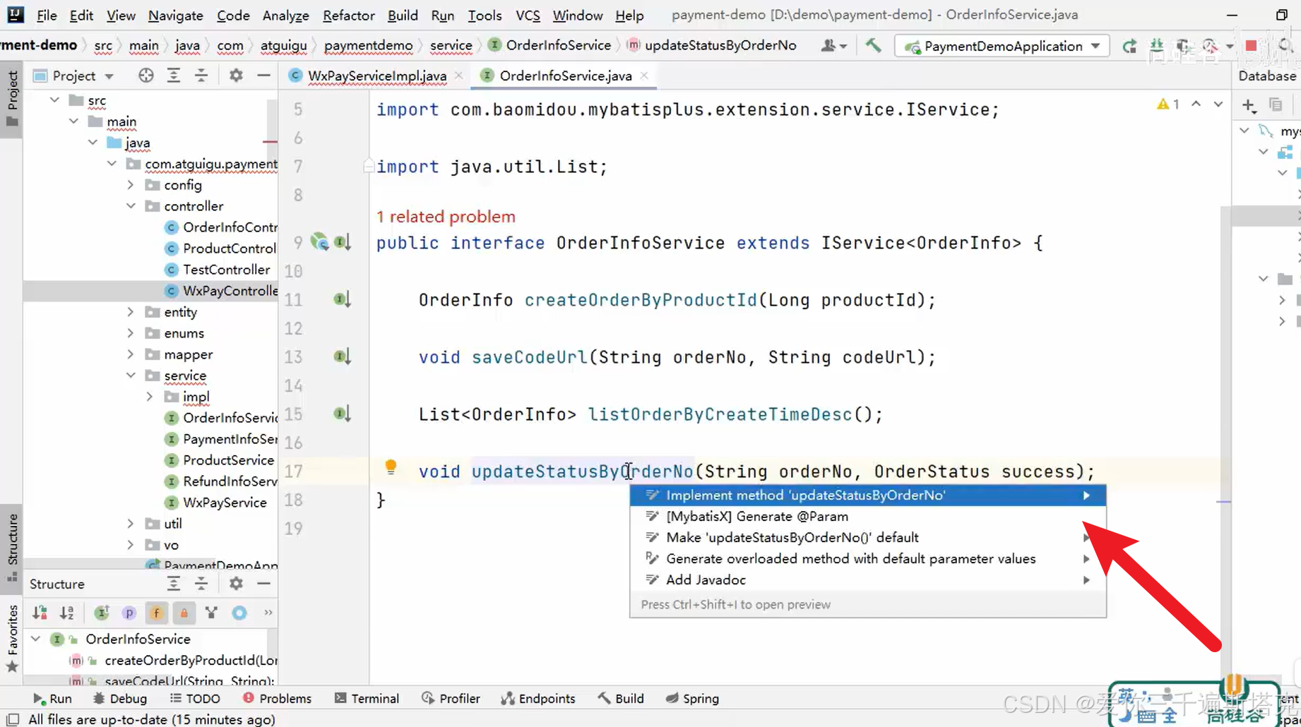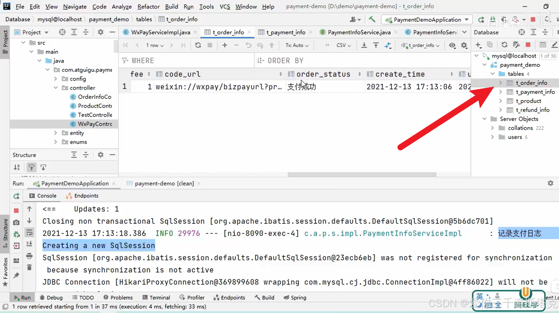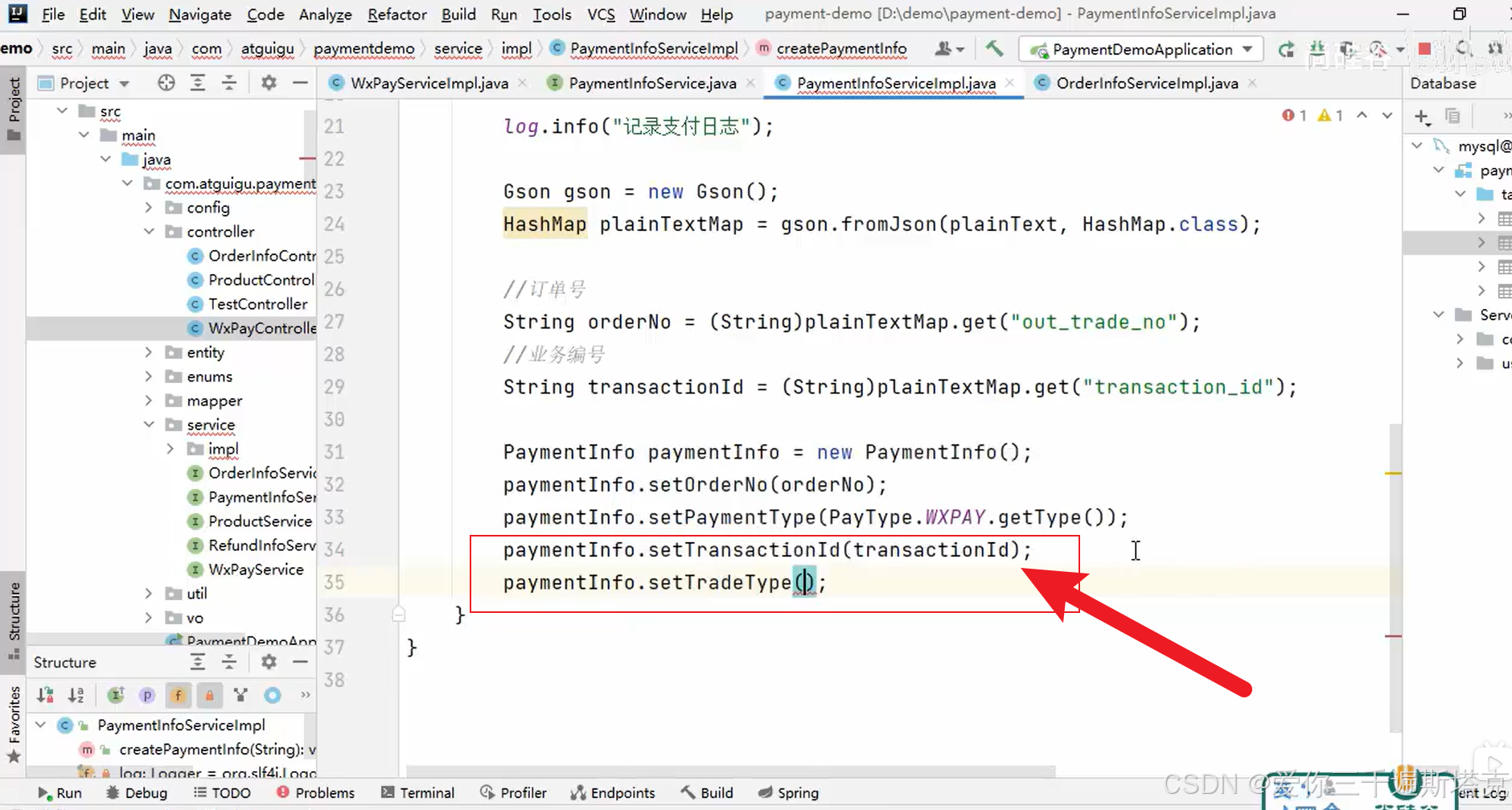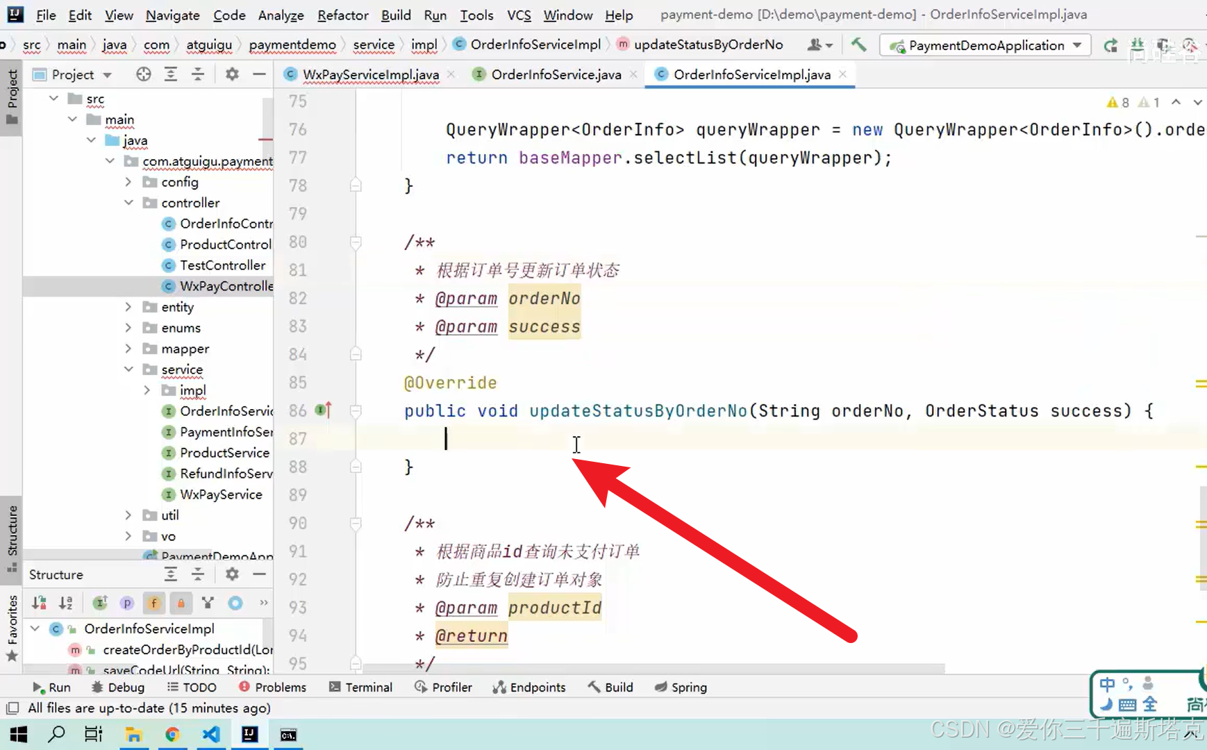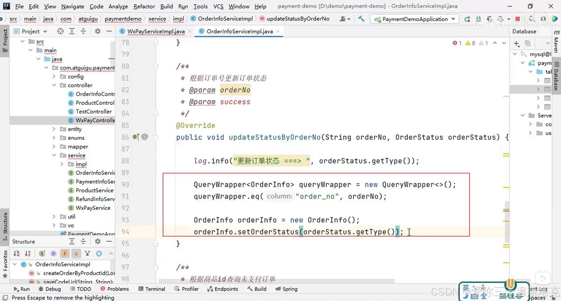 接下来更新订单状态,利用枚举传入一个支付成功的状态