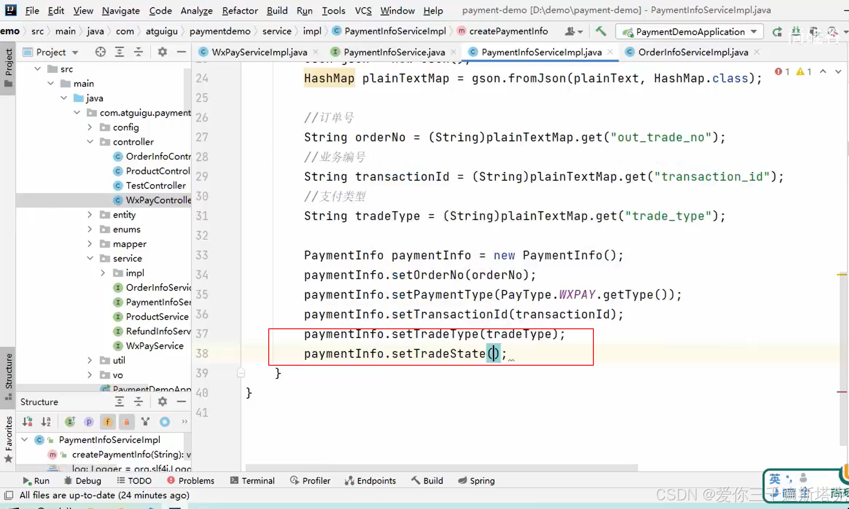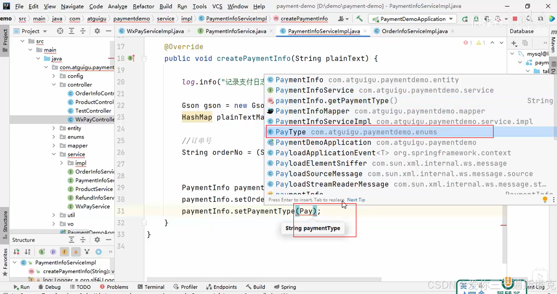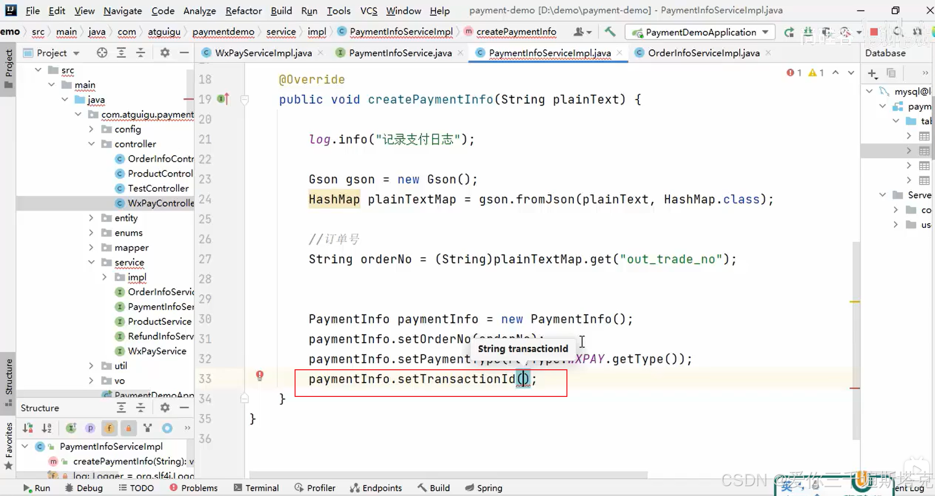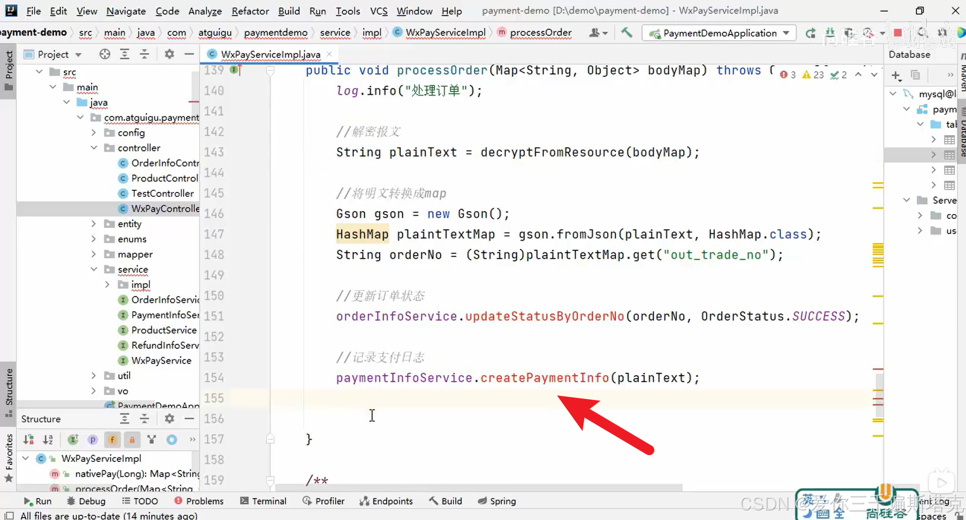接下来更新订单状态,利用枚举传入一个支付成功的状态