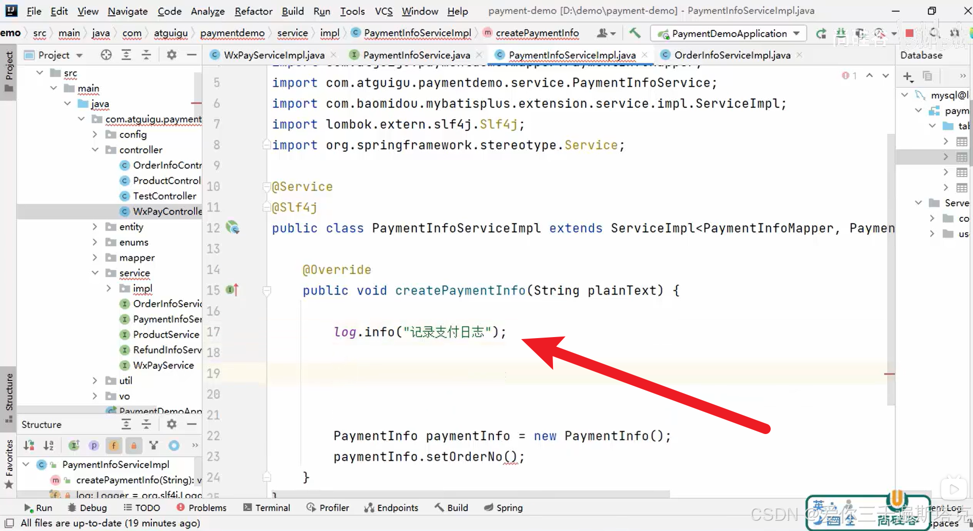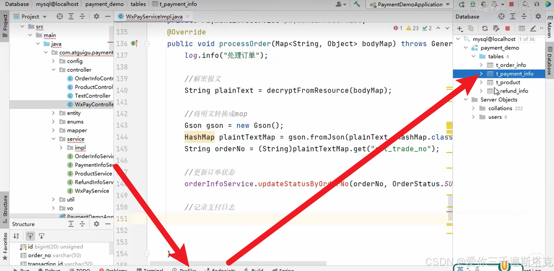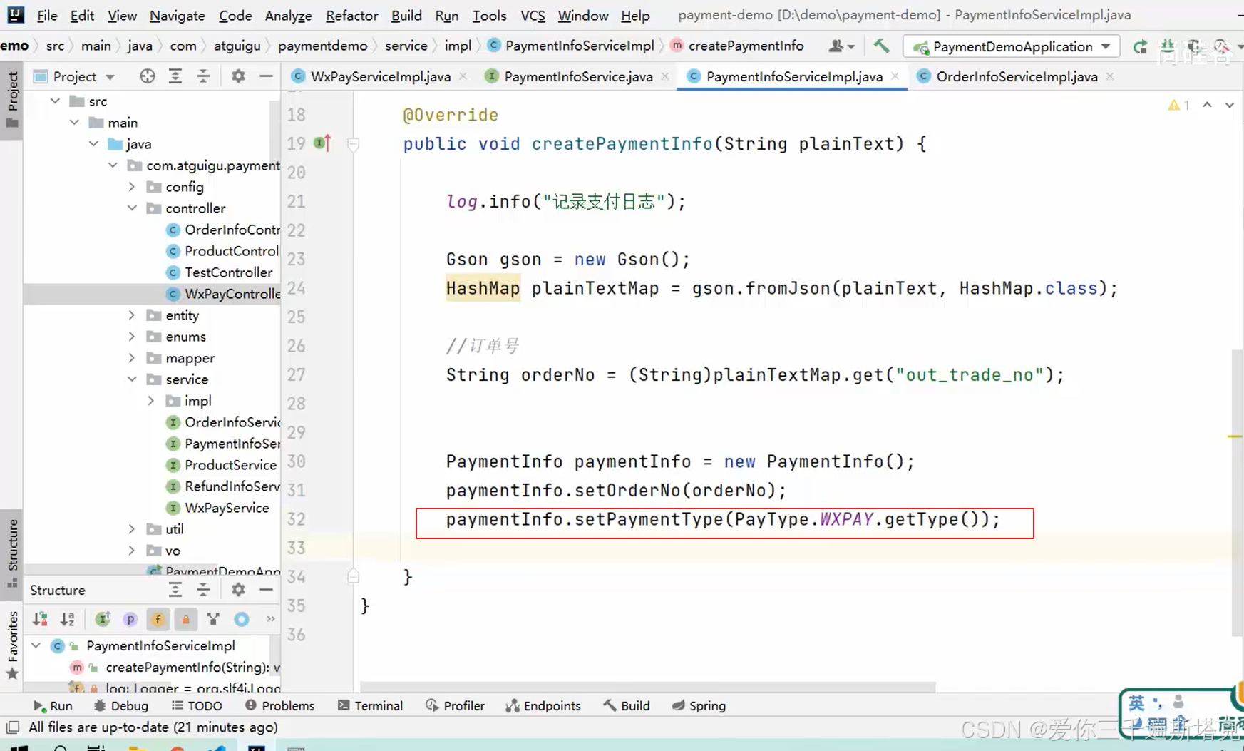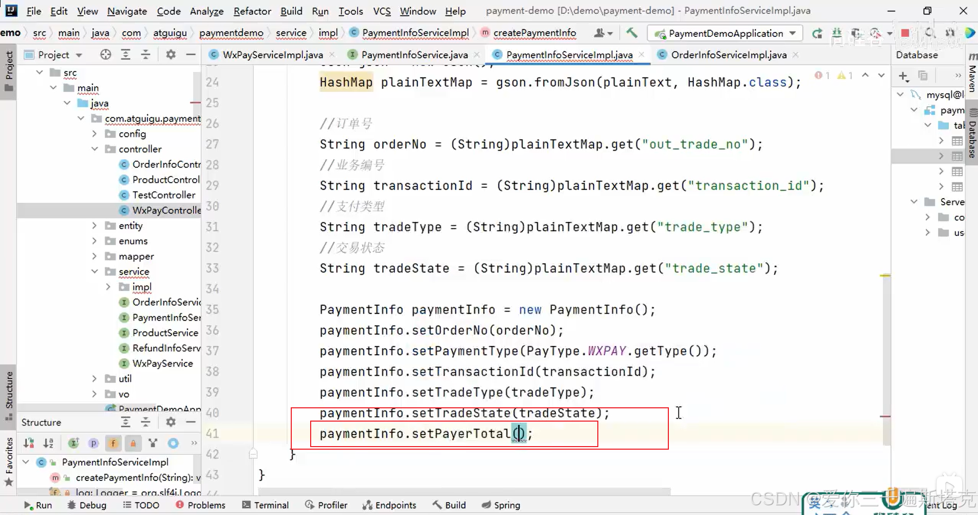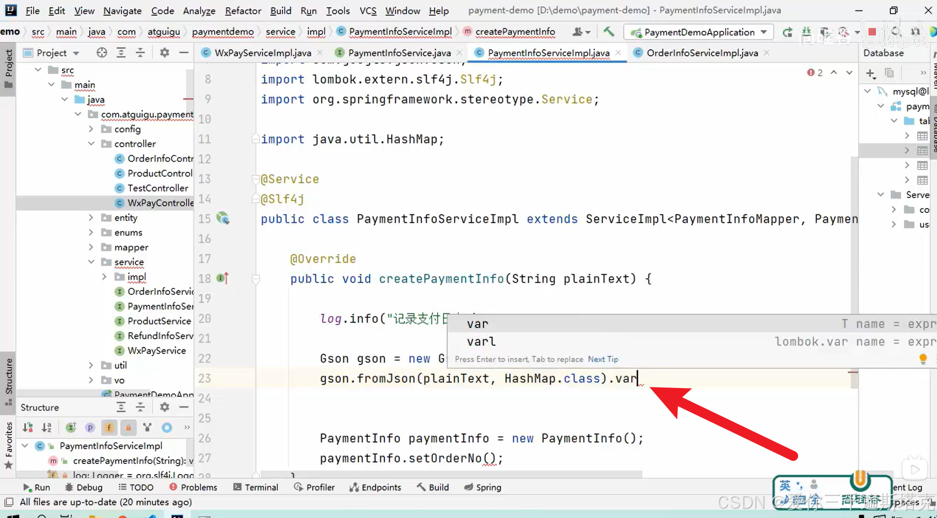 接下来更新订单状态,利用枚举传入一个支付成功的状态