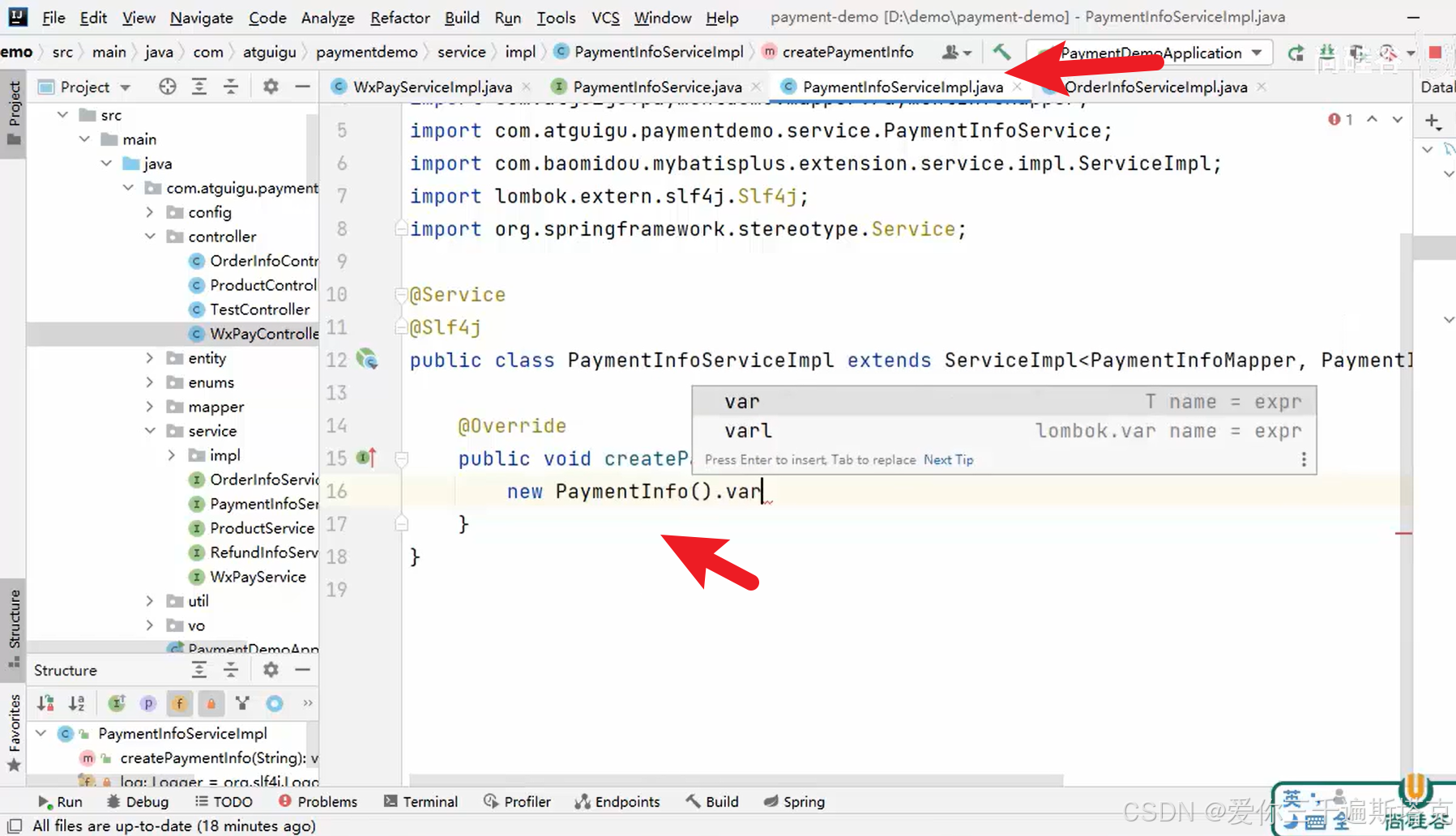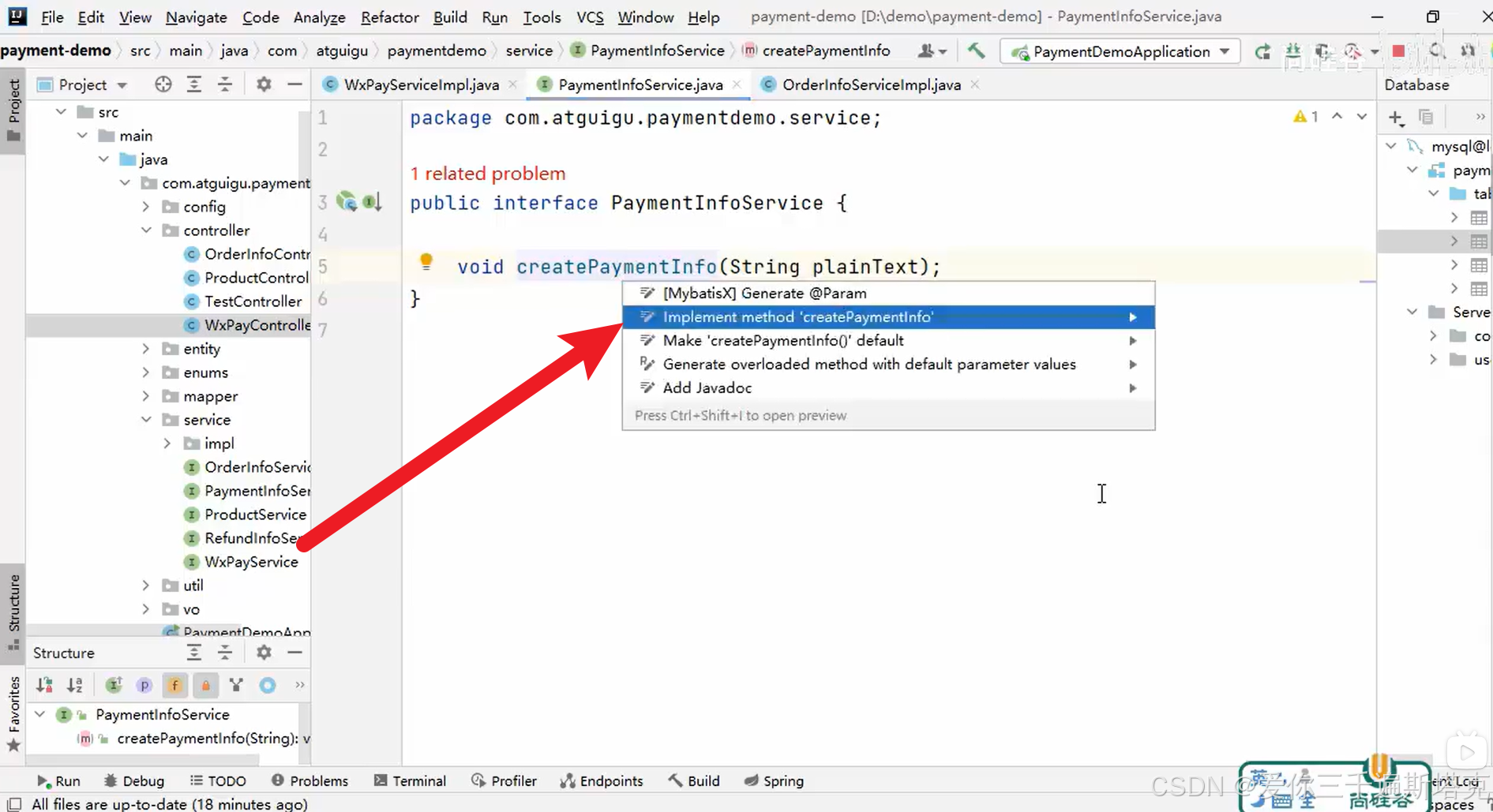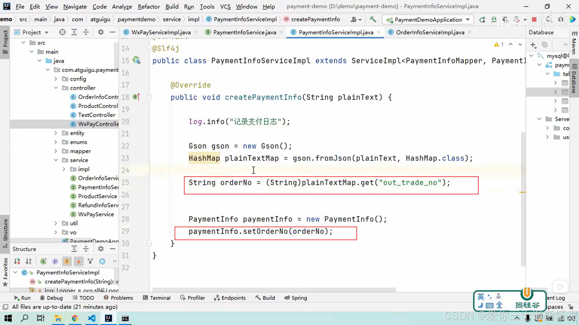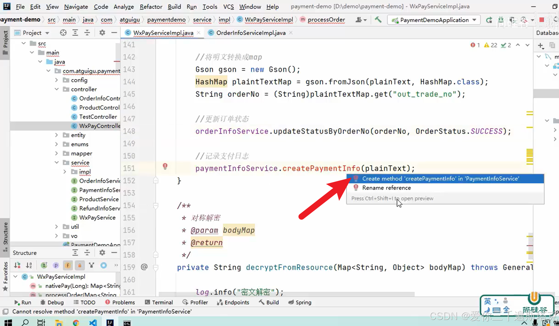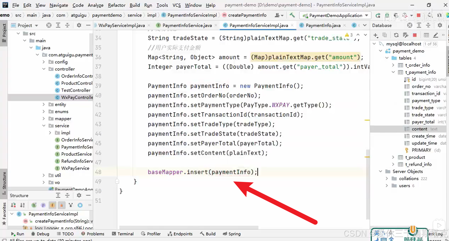 接下来更新订单状态,利用枚举传入一个支付成功的状态